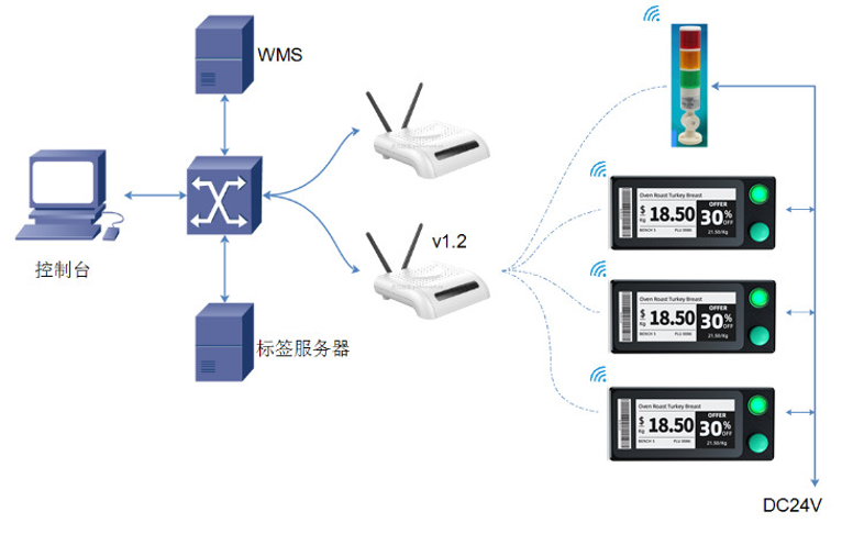 Le système de prélèvement par étiquettes électroniques consiste à envoyer des instructions via le système de prélèvement, à les transférer par le routeur, puis à commander les voyants LED ou les écrans sur l'étiquette électronique afin de guider le personnel de prélèvement pour récupérer précisément et rapidement les marchandises correspondantes vers l'emplacement désigné.