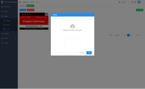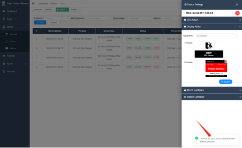 ⑥ Appuyez sur la touche K à la base du produit, et l'adresse MAC de l'appareil s'affichera en bas à droite. Copiez les paramètres dans l'appareil de recherche d'adresse MAC géré par l'appareil, puis cliquez sur l'écran Paramètres pour actualiser le modèle d'image téléchargé